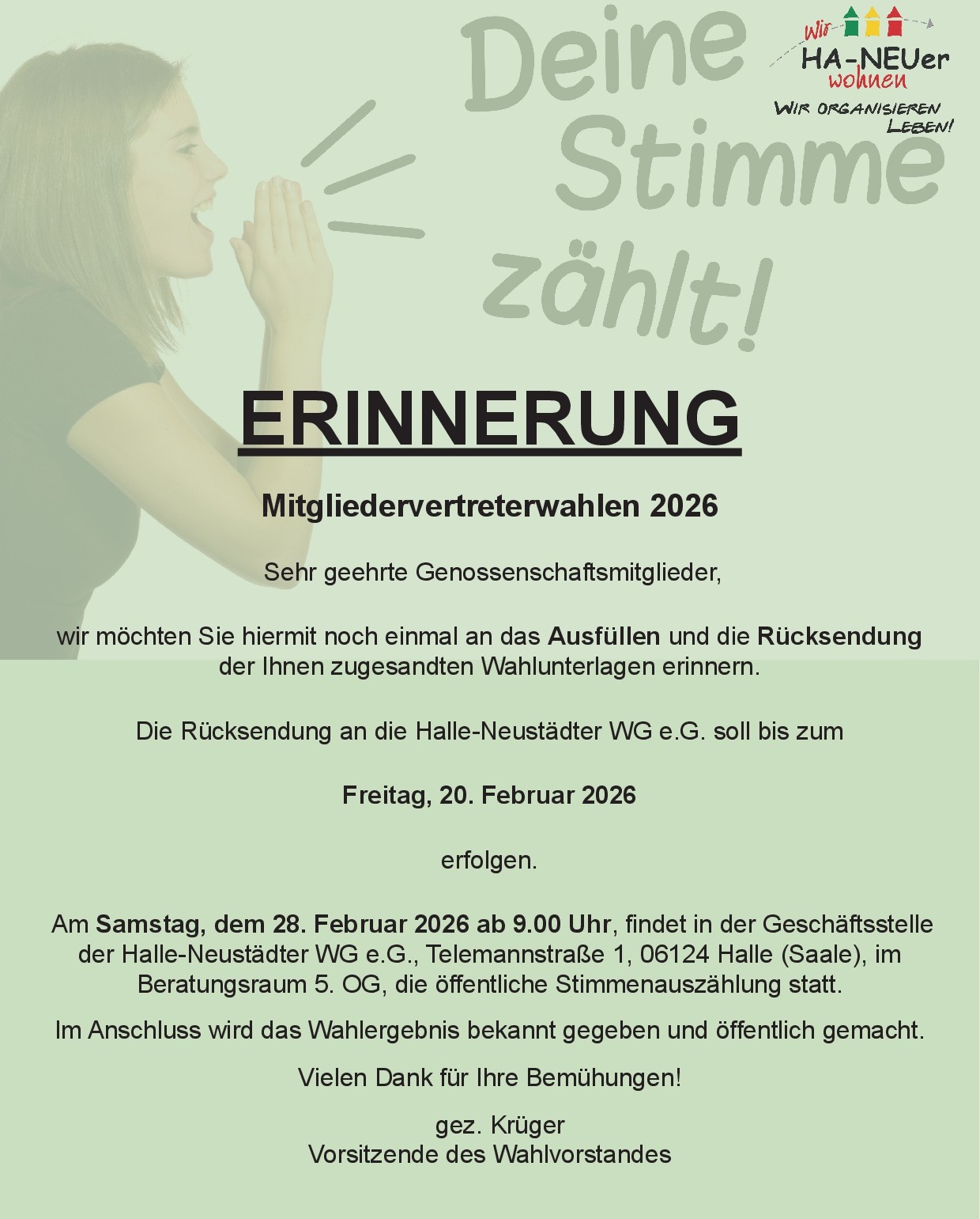 Februar 2026 - Aufruf zur Verteterwahl - jede Stimme zählt!