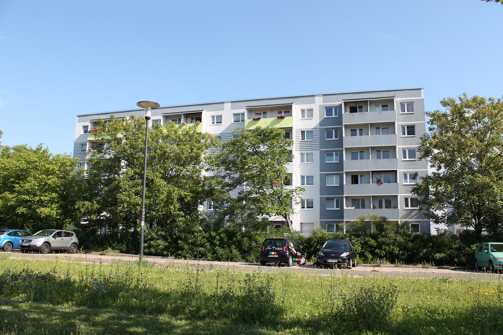Die Wohnung befindet sich im westlichen Halle-Neustadt.
