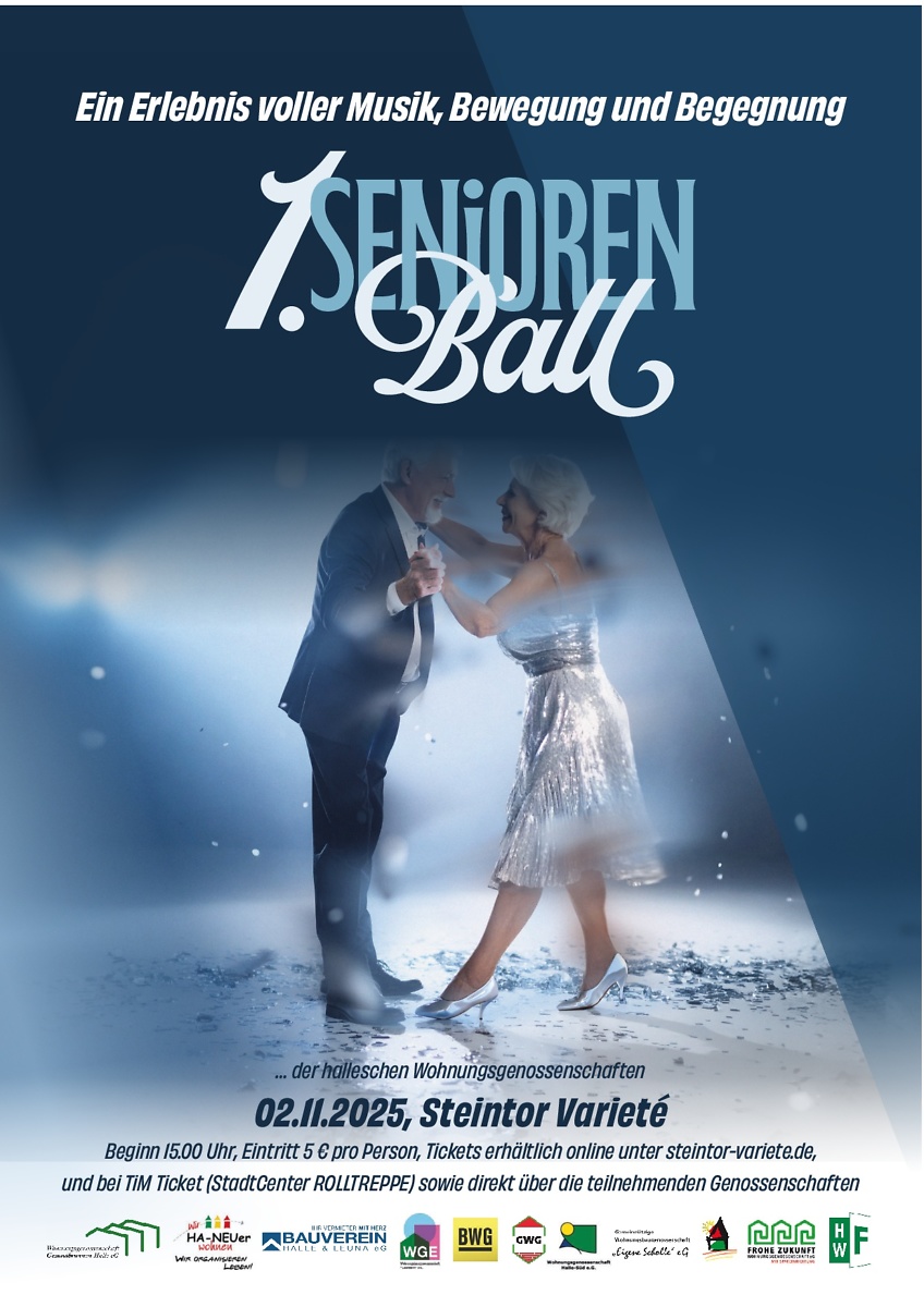 Die halleschen Wohnungsgenossenschaft laden zum 1. Halleschen Seniorenball ein.