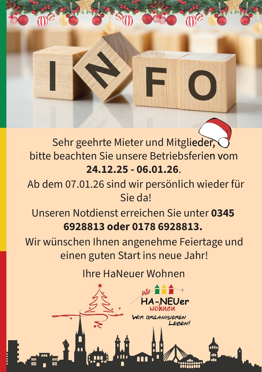 In Havariefällen erreichen Sie unseren Notdienst unter 0345 6928813 oder 0178 6928813.